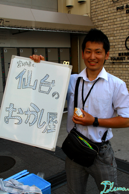 桜木町の駅まで帰ったら、お兄さんが仙台銘菓を売り歩いていました。